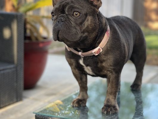 Chloe is a female French Bulldog. Carefully selected as a great representative of her breed, Keisha decided to make her part of their program. Keisha has passed Good Dog’s screening process, which involved a review of their breeding practices, environment, and the mental and physical health of their dogs.