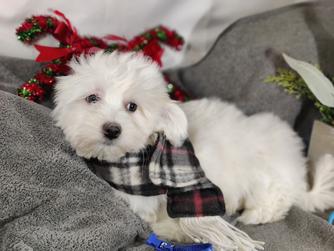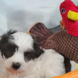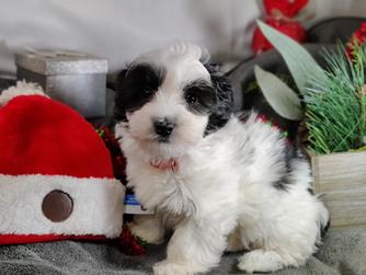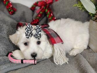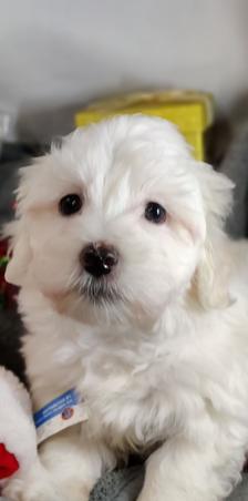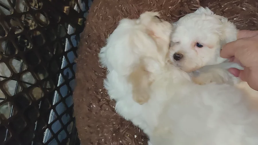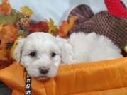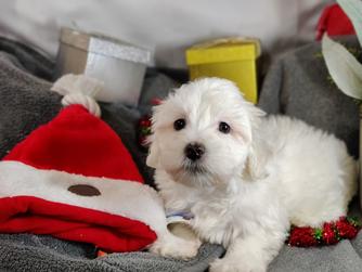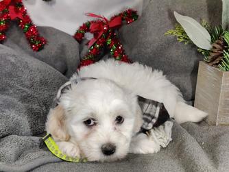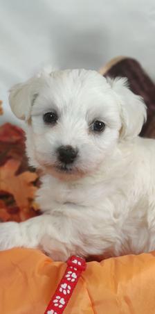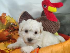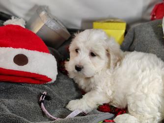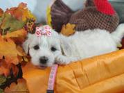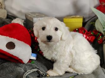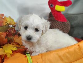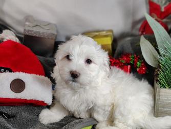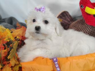 Our Coton de Tulear puppies are white. Poodle puppies include red and phantom. Colors will vary depending on the parent dogs.