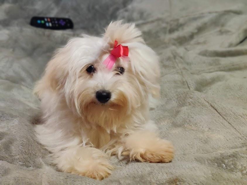 It was so easy working with Carolyn. She was very quick to respond and available any time to answer questions. We opted for the flight nanny option which Carolyn arranged for us. The flight nanny was also communicative and easy to work with the day we met at SFO airport. We had a positive experience from start to finish in bringing home our puppy from mama Abbi's litter, whom we have named Sprite. She is so beautiful and has a wonderful personality--smart, playful, and loves to sit on our laps. We truly enjoy her companionship.