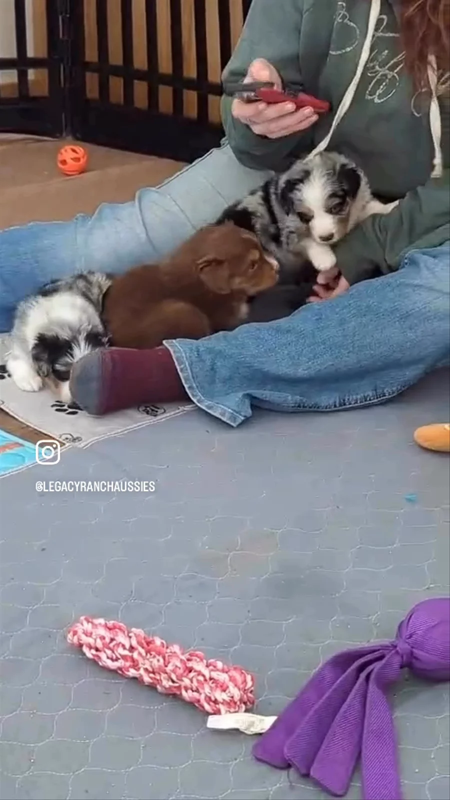 I talked to three breeders when we were considering an Aussie puppy. Holly at Legacy Ranch Australian Shepherd’s was so friendly and responsive, she quickly earned our trust. We especially liked that once we paid our deposit, we were put in a queue to spend time with the puppies and select the one that best fit our family. All the puppies were so special and gentle, very loving. We knew it would hard to pick just one! In our case, little Sierra walked right over and picked us! ❤️ Two weeks after we picked our puppy, we were able to bring her home. Sierra is just the sweetest girl! She’s already fitting into our family after less than a week, and she loves her big brother Finn. The packet of info Holly provided has been very helpful. This has been a fantastic experience, and we’ll certainly contact Holly the next time we’re looking for an Aussie puppy!