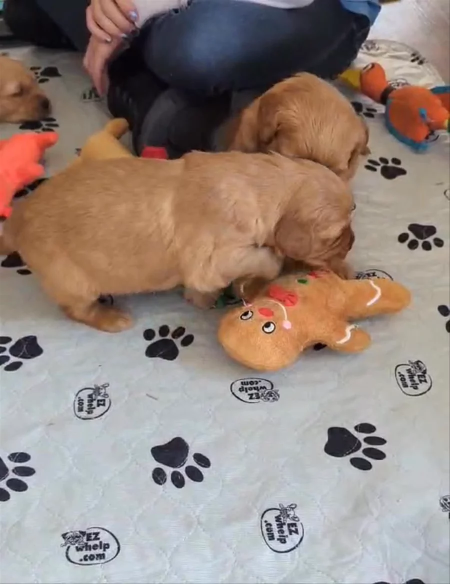Our puppies are dark golden. Colors will vary depending on the parent dogs.