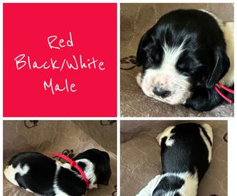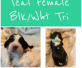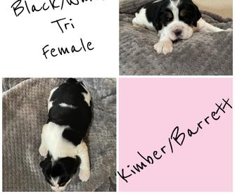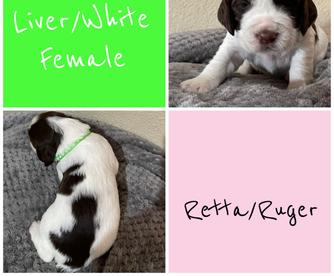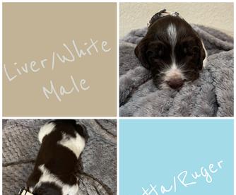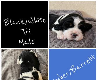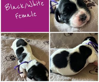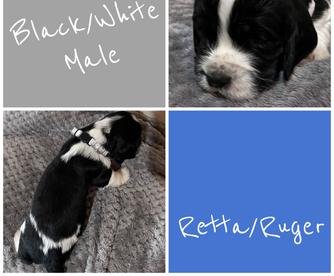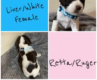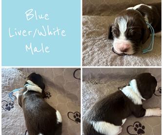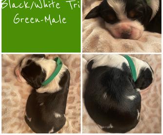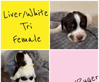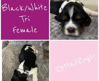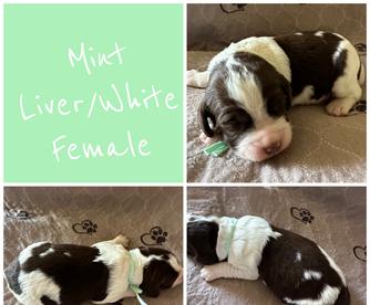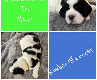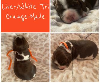 Our puppies include liver white and tan, black white and tan, liver and white, and black and white. Colors will vary depending on the parent dogs.