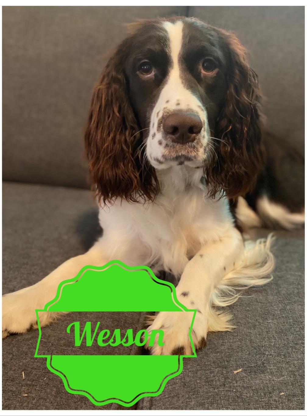 Wesson is a Liver/White male he is very loving but loves to play when he is outside