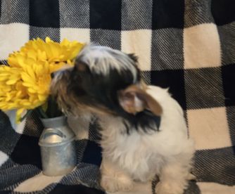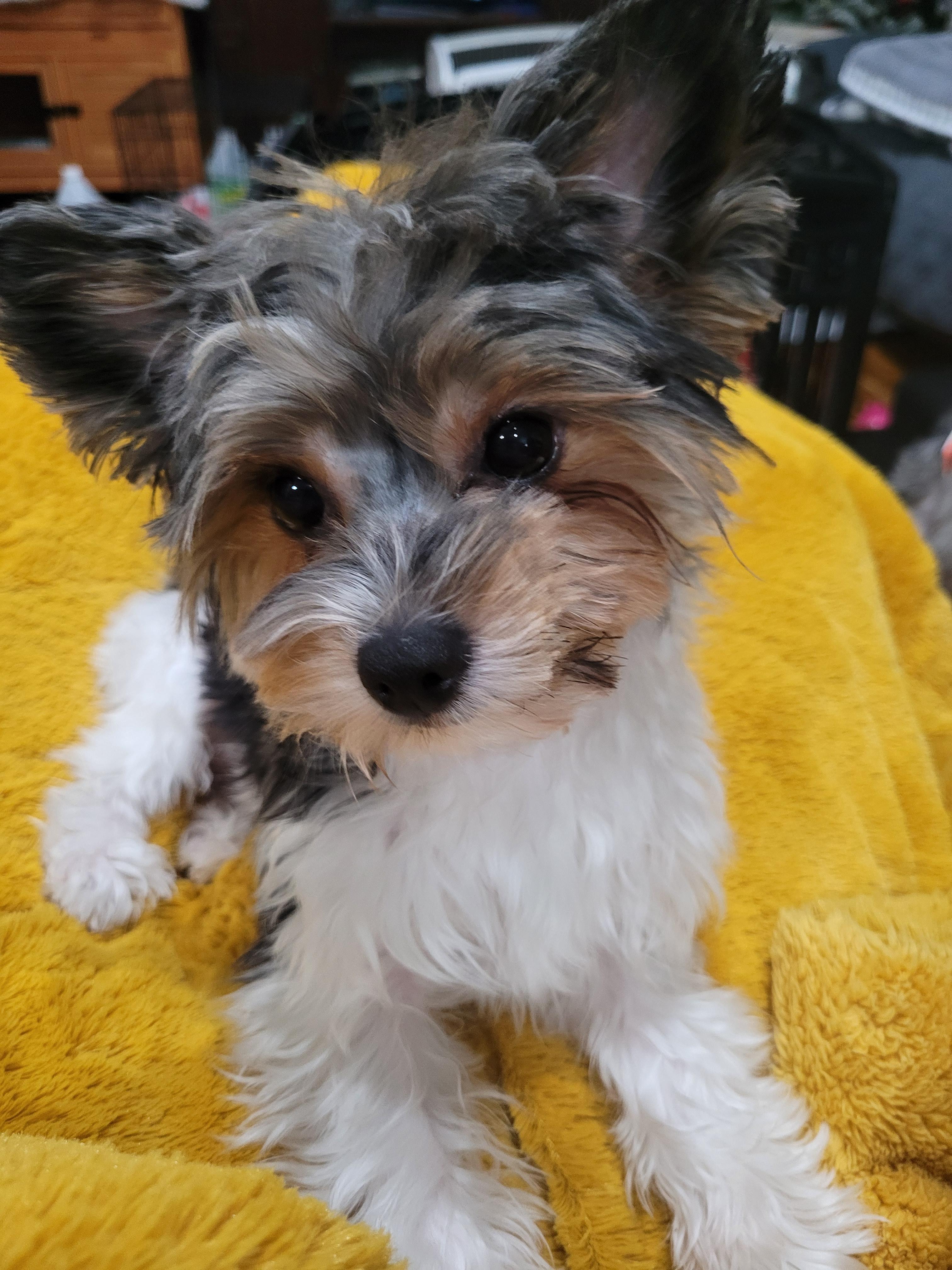 Essie is a beautiful girl and a great mother. She is one of my most loving dogs. She loves to play and loves cuddling in my robe while watching TV. She has beautiful colors and soft silky hair. She's so sweet you can't help but love her!