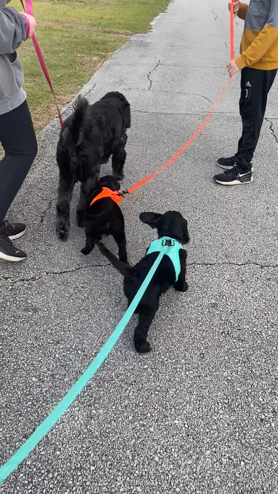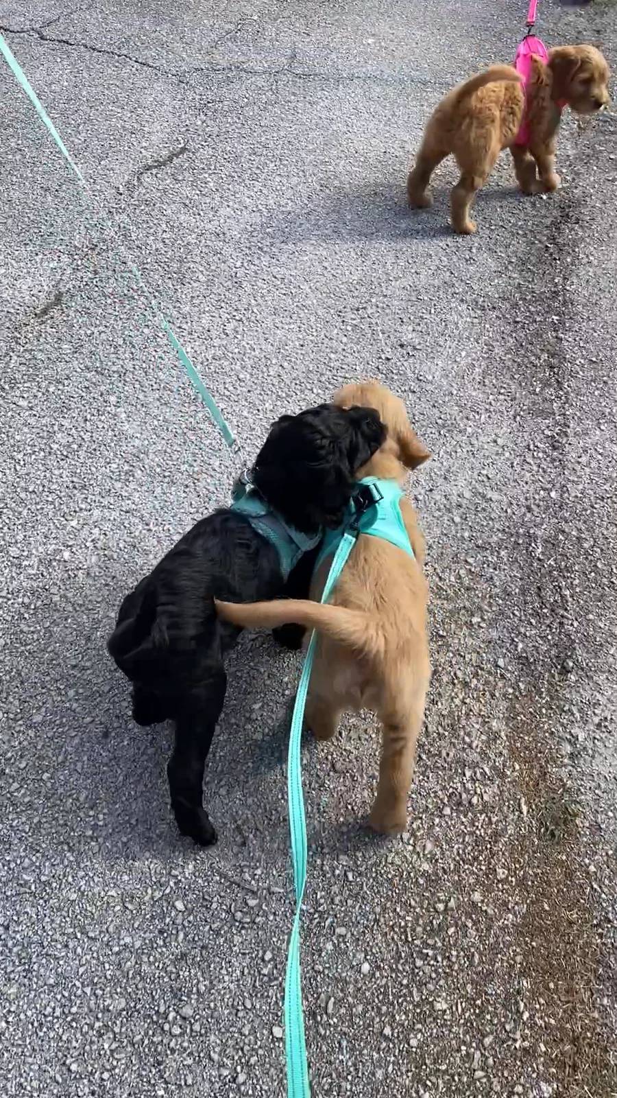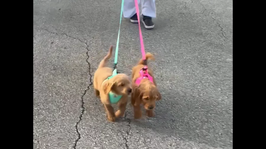 Leash “training” at its finest. We love our pups so much! Get one before they are all gone. Only 2 sweet boys left. Oreo is a sweet, bouncy little teddy bear and Churro is a playful, happy and calm companion. Both would make great family pets.