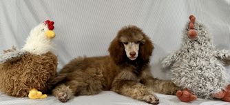 Maya is a stunning Standard Poodle with a gentle and sweet temperament. Her calm and mellow nature makes her an absolute joy to be around.