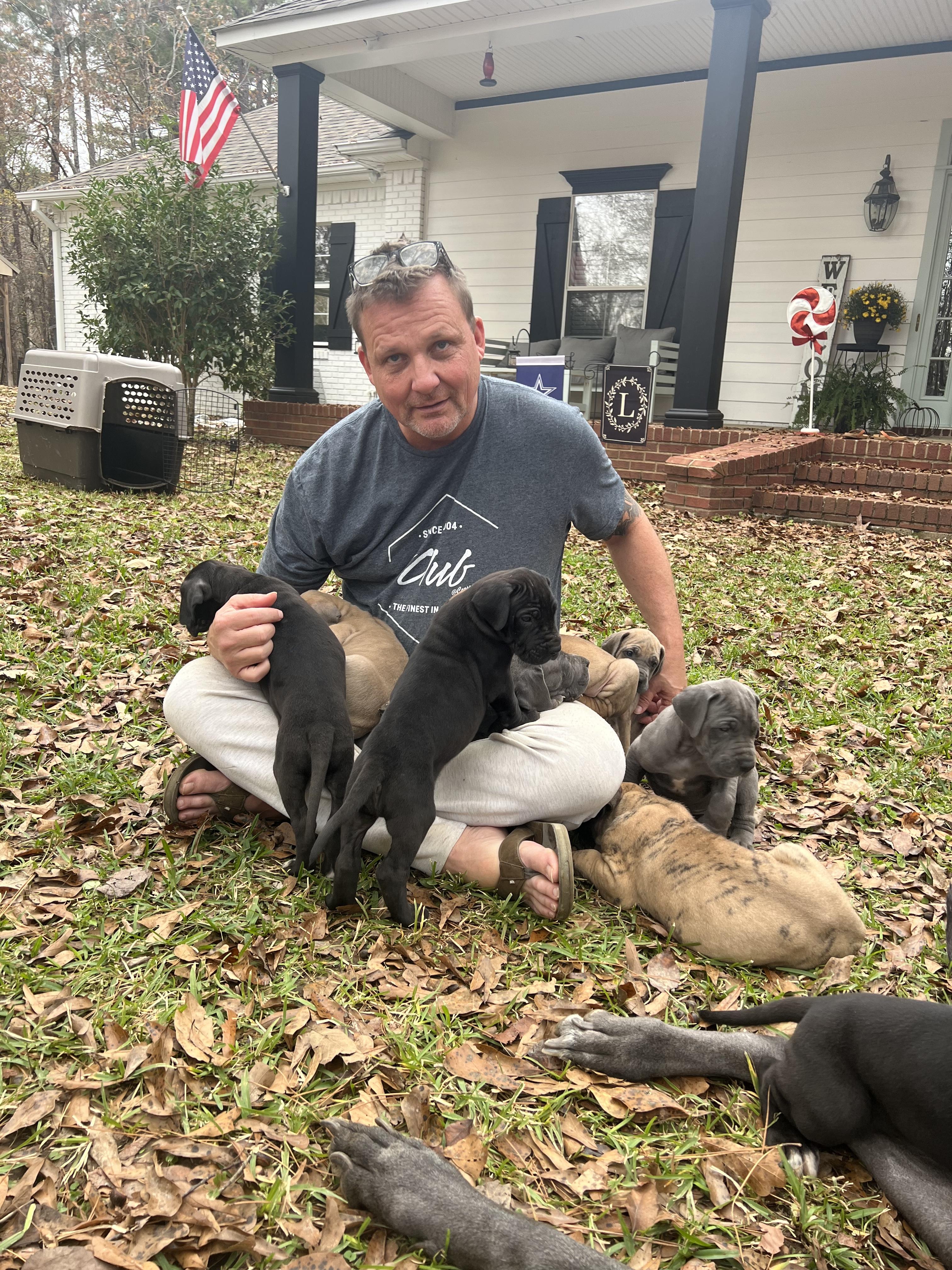 I'm Leslie W., the breeder behind Leslie Woodard's Great Danes located in Brandon, MS. We’re devoted to ensuring there are healthy puppies for others to enjoy and we do so by responsibly growing this incredible breed. We have developed several protocols to ensure the health and well-being of all of our dogs. It’s our top priority to make sure each of our puppy families welcomes a happy and healthy new family member into their homes!