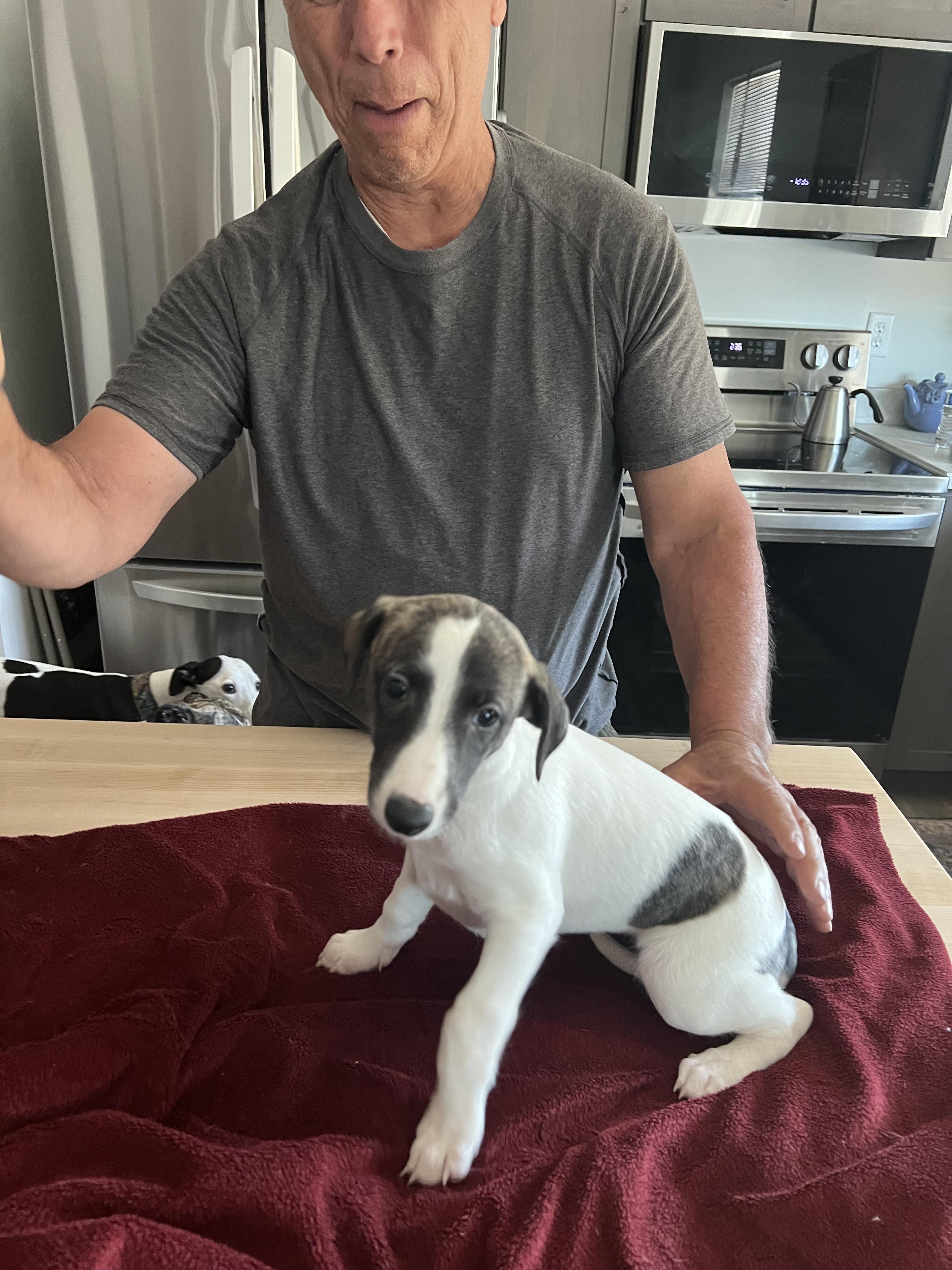 My wife and I are so pleased with our decision to get Ziggy from Linda and John. After having a nightmare experience with another breeder, we found the complete opposite with Linda. She was so helpful and interactive throughout the entire process. We were texting her constantly and she was always more than happy to answer all of our questions. We really looked forward to our daily updates and pictures/videos. Literally everyday she would send something. Our puppy was raised in their home, he was socialized, and they were calling him by his new name as soon as we made the decision to move forward. Ziggy is healthy, happy and such a joy. We could not possibly recommend Lexylews Montana Whippets enough and we plan to get our next Whippet from them in the near future. 😁