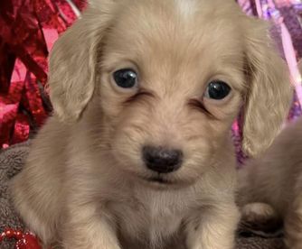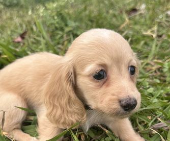 Jules is a very petite EE Cream Longhair miniature dachshund female. She is AKC Registered. She has the most perfect more petite sized puppies.