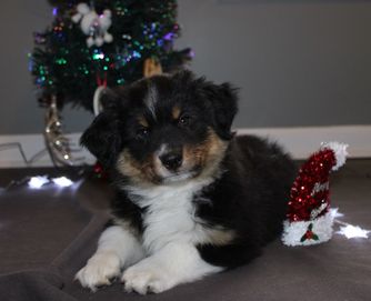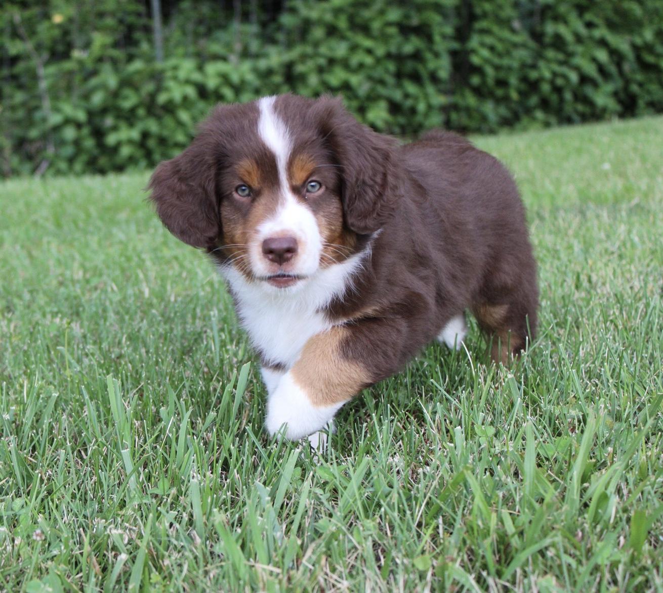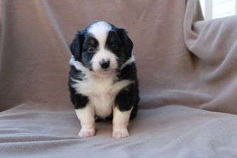 Our puppies include red tri-color, black tri, red merle, and blue merle. Colors will vary depending on the parent dogs.