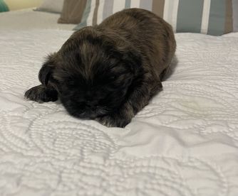 I'm Terri F., the breeder behind Lhasa Apso Doggy Stylez Fl located in Palm Bay, FL. All of our puppies are raised as members of our family until they’re ready to join yours. I have owned Lhasa Apso's for several years and have always wanted to breed and now I have the perfect pair. Both are loving, smart and attentive. I am currently employed at an Assisted Facility taking care of the elderly and I am lucky enough they allow Cooper and Zoey to go to work with me and the dogs love it. They are very gentle with the residents and look forward to going. Both parents have Champion bloodlines with a calm and gentle nature. They will be exposed to children as well as adults and at 8 weeks they will go for Vaccinations and deworming with a full medical checkup from a vet. They will also have plenty of time outside for play and start the potty-training process.