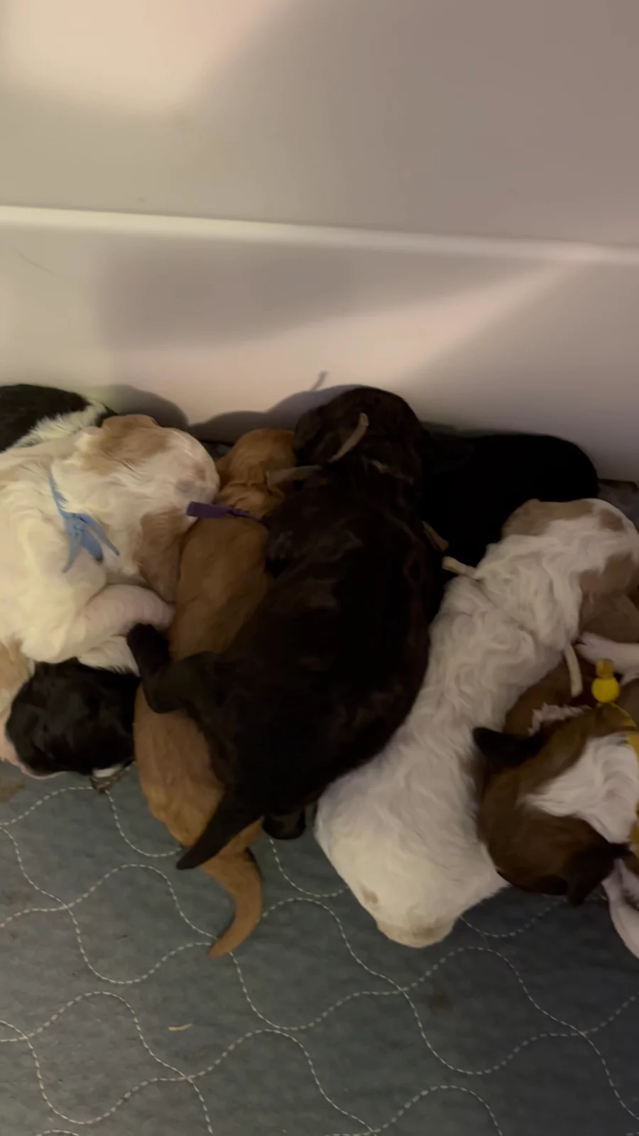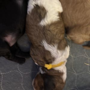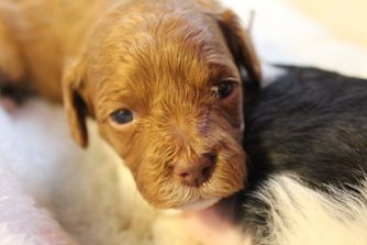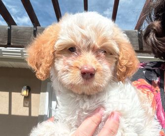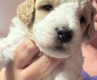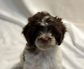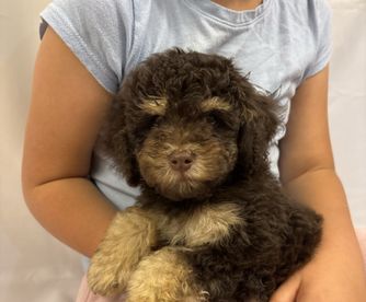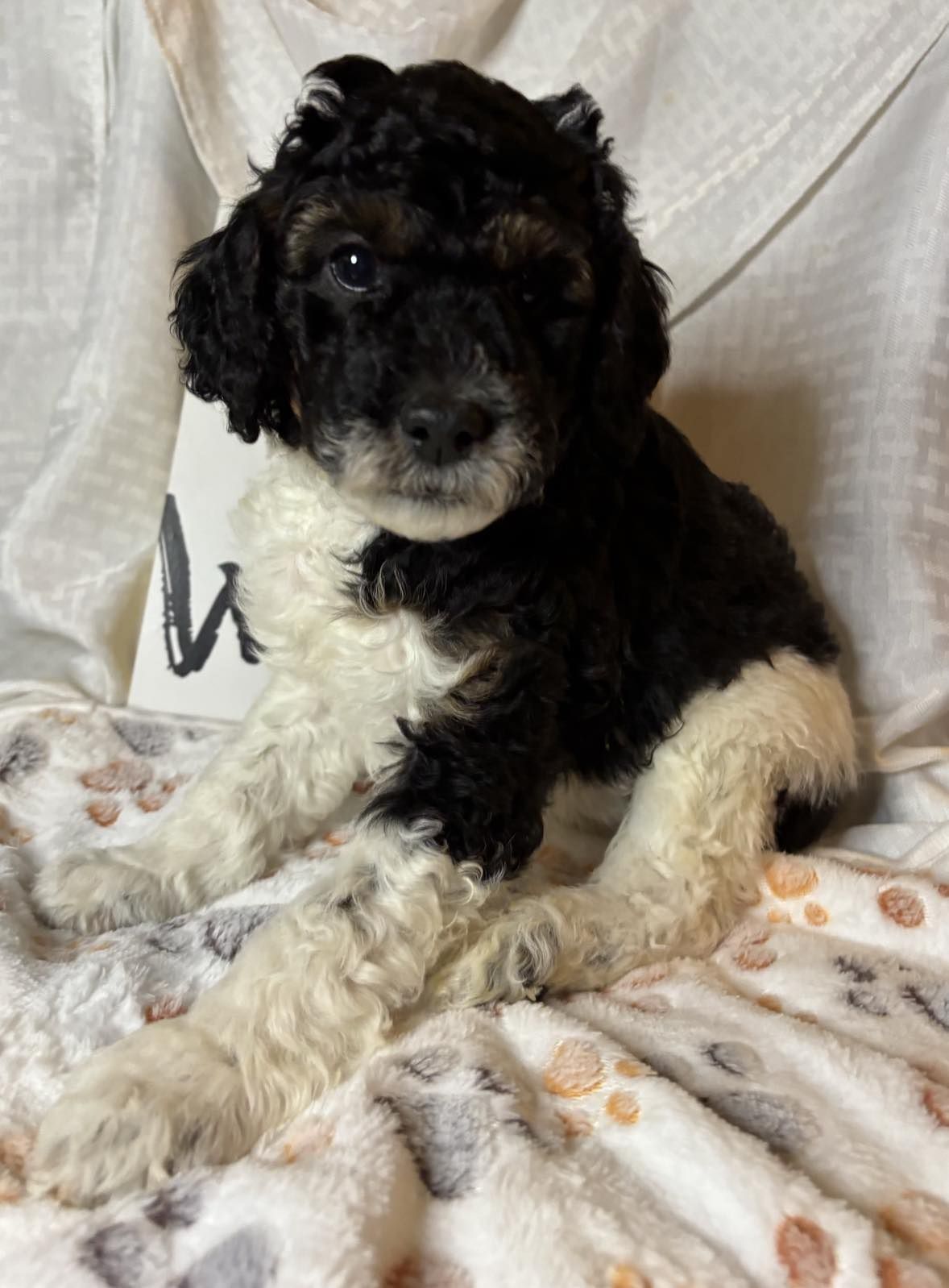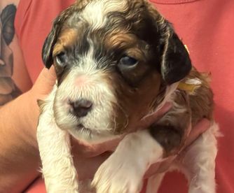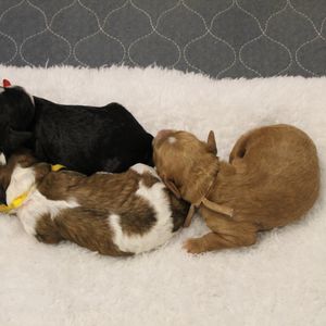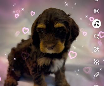 Our Cavapoo puppies include black and tan, black and white, tri-color, brown, red, and apricot. Bernedoodle puppies include brown, black and white, and tri-color. Poodle puppies include brown, red, and parti. Colors will vary depending on the parent dogs.
