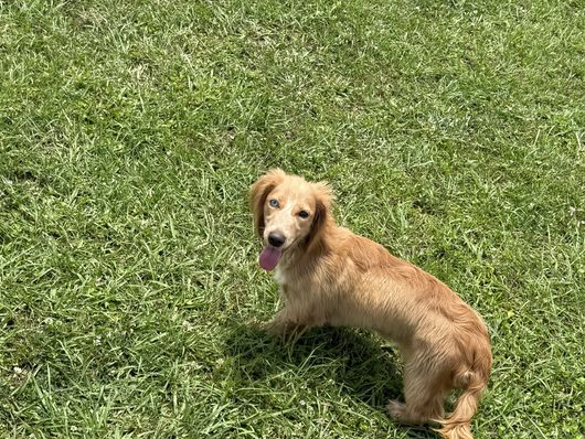 Cotton is a male Dachshund. Carefully selected as a great representative of his breed, Katelynn decided to make him part of their program. Katelynn has passed Good Dog’s screening process, which involved a review of their breeding practices, environment, and the mental and physical health of their dogs.