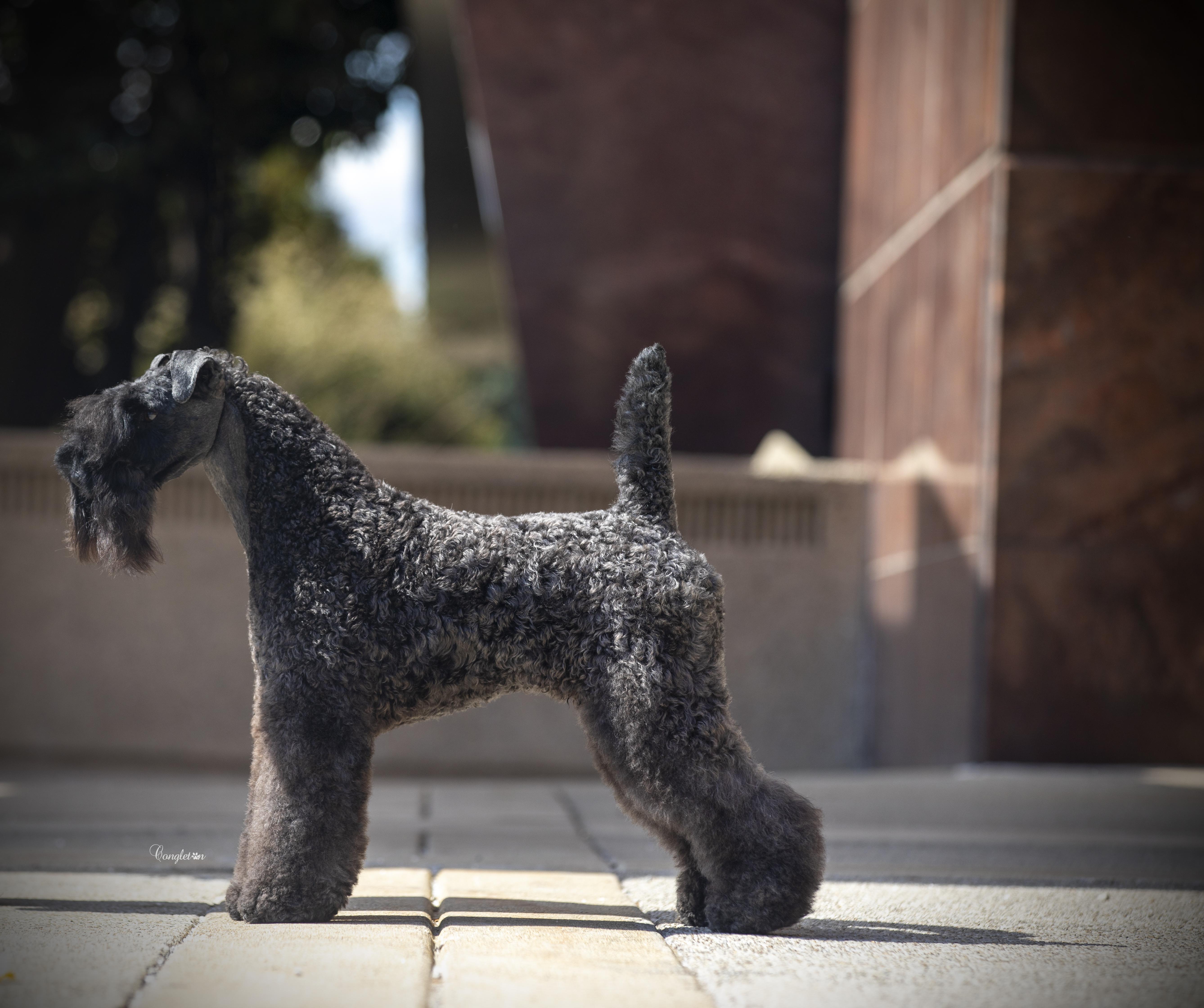 Lennox is a female Kerry Blue Terrier. Carefully selected as a great representative of her breed, Stephanie decided to make her part of their program. Stephanie has passed Good Dog’s screening process, which involved a review of their breeding practices, environment, and the mental and physical health of their dogs.
