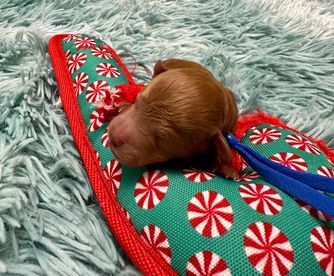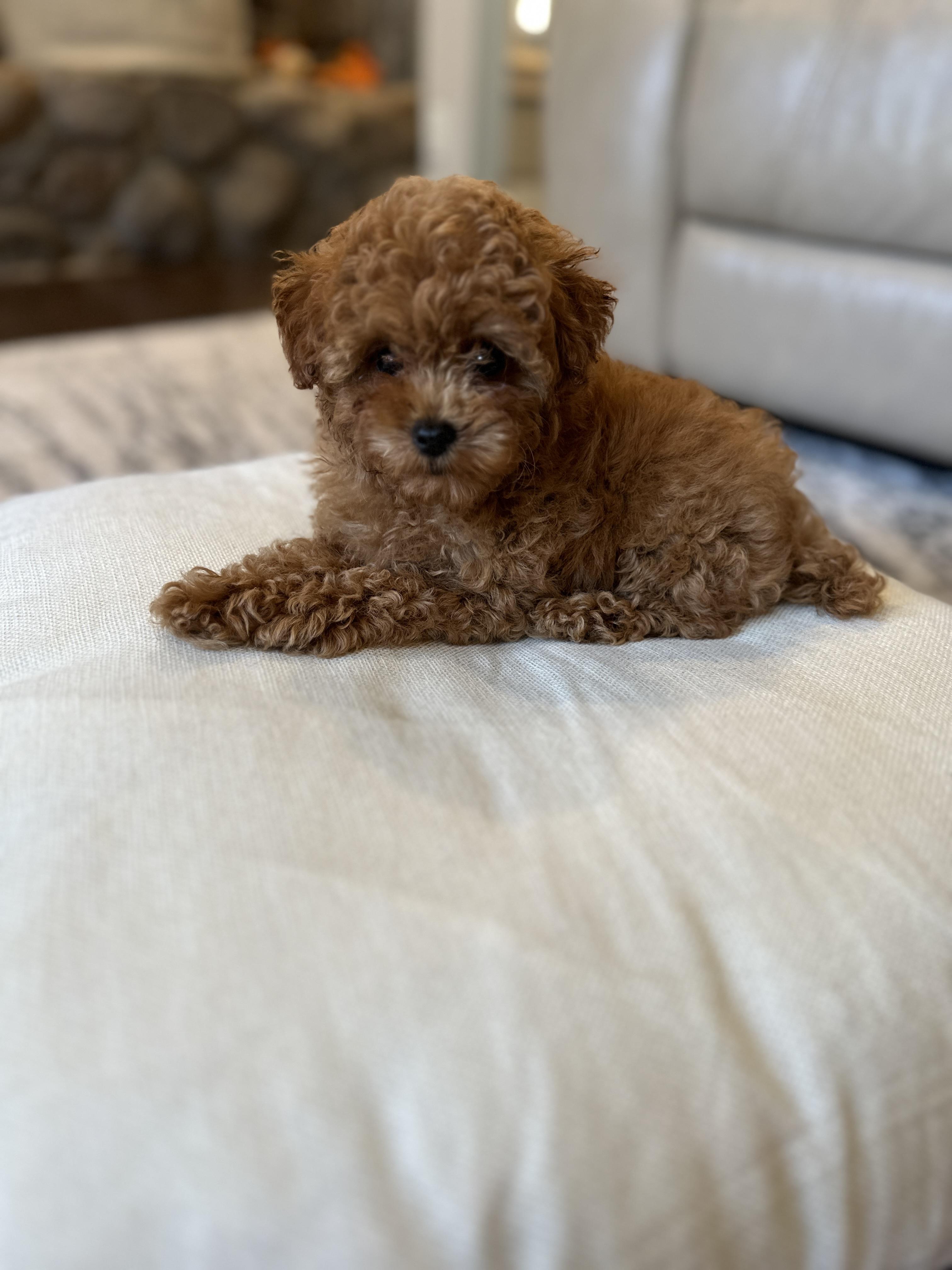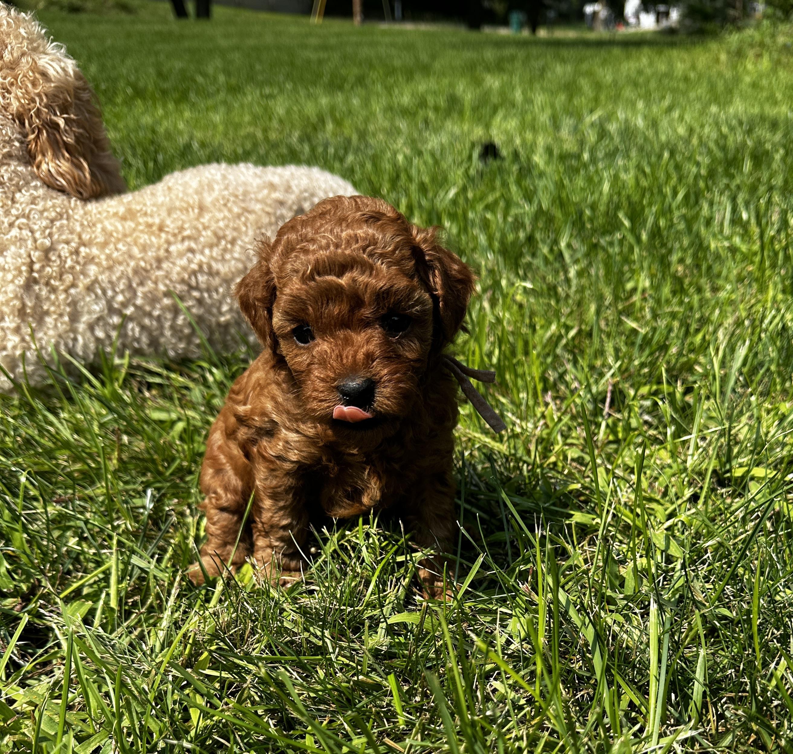 Our puppies include apricot and red. Colors will vary depending on the parent dogs.