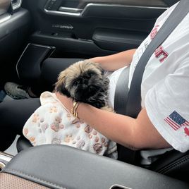 We picked Polly up on October 16, 2025 at Brook’s home. We put Polly in her car seat and drove to Florida. Polly was an angel throughout her long car ride. We got to Florida at 10:30pm, put Polly in her puppy playpen and she never cried at all. She’s been sleeping through the night since we brought her home. I don’t know what Brook did to help a new puppy adjust to sleeping through the night in a new home but we are extremely grateful. I expected to be up with a new puppy crying all night for a week or two. It never happened. Polly is now 13 weeks old and has had all of her shots and our vet told us she’s a healthy pup. She now weighs 3.4 lbs and loves to eat. She goes for her first grooming on November 6th and we lucked out with finding this new groomer through our vet’s recommendation. Alex is also a Shih Tzu breeder who shows dogs so I’m sure she’ll be beautiful when groomed. We can’t thank Brook enough for letting us adopt our precious puppy. Polly is a joy to have and a little rascal. She keeps us all laughing every time she does something. Right now Polly is working very hard to train us and we find it very amusing with her little demands. She wants lots of kisses and belly rubs. We are looking forward to many years with Polly. She’s such a sweet little girl. If you are looking for a Shih Tzu puppy I would highly recommend getting one of Brook’s puppies. They are raised with love and patience.