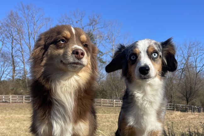 Tate is like a teddy bear... so cuddly and so lovable! He is very loyal to our family and has enough energy to keep us all on our toes! He has a full, fluffy coat with symmetrical markings. With his one blue eye and one brown eye, he gets lots of extra attention from guests. Tate loves to work with our livestock and loves to sunbathe in his downtime. Tate is 22lbs and 15"