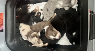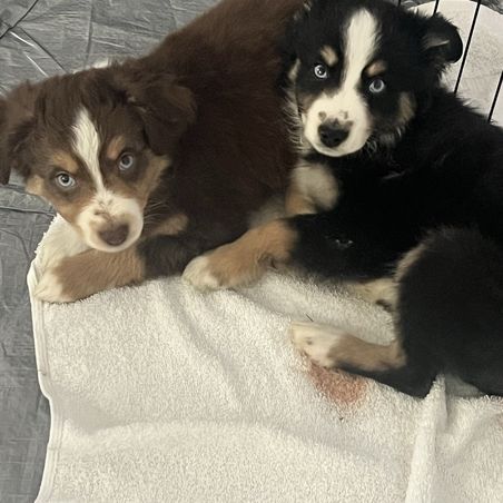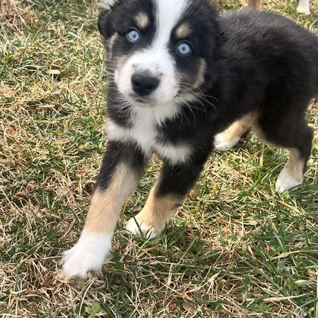 Our puppies include blue merle, black tri, red tri, and red merle. Colors will vary depending on the parent dogs.
