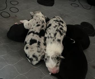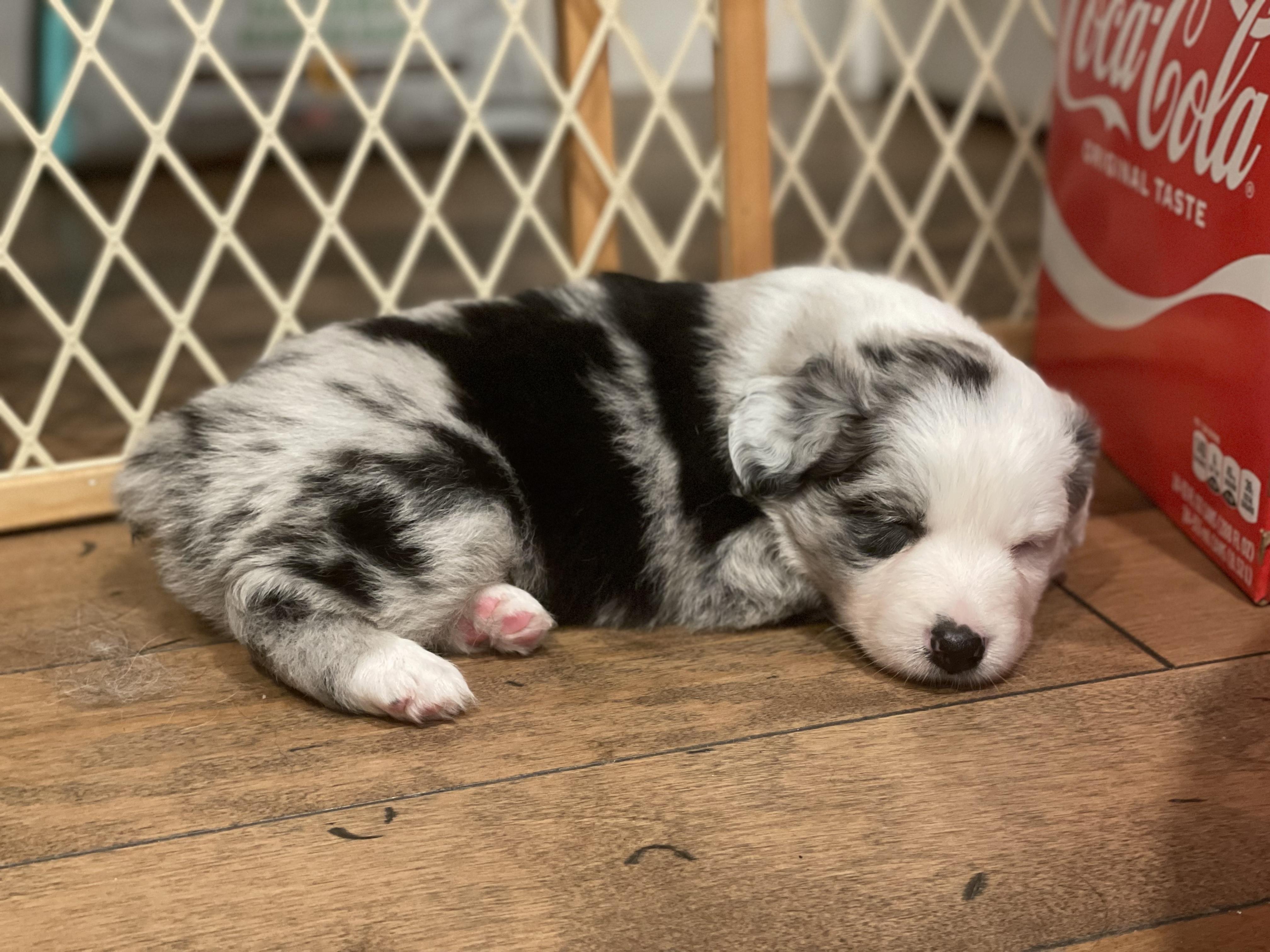 Our puppies include black, red merle, blue merle, and red. Colors will vary depending on the parent dogs.