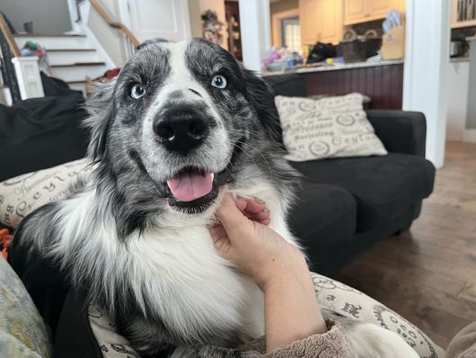 Cash is a male Australian Shepherd. Carefully selected as a great representative of his breed, Rene decided to make him part of their program. Rene has passed Good Dog’s screening process, which involved a review of their breeding practices, environment, and the mental and physical health of their dogs.