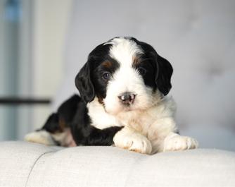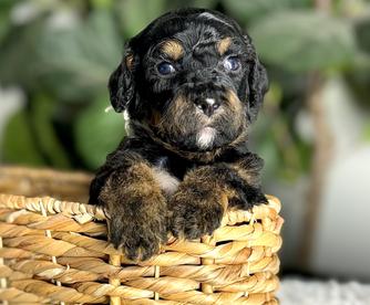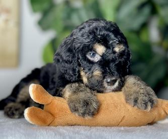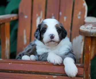 Odyssey is our 40lb multi-gen Bernedoodle stud. His personality... I wish I could find the right words for! It is the perfect mix of loving, affectionate, and silly. He is clear on his genetic testing with the exception of 1 copy of cddy.