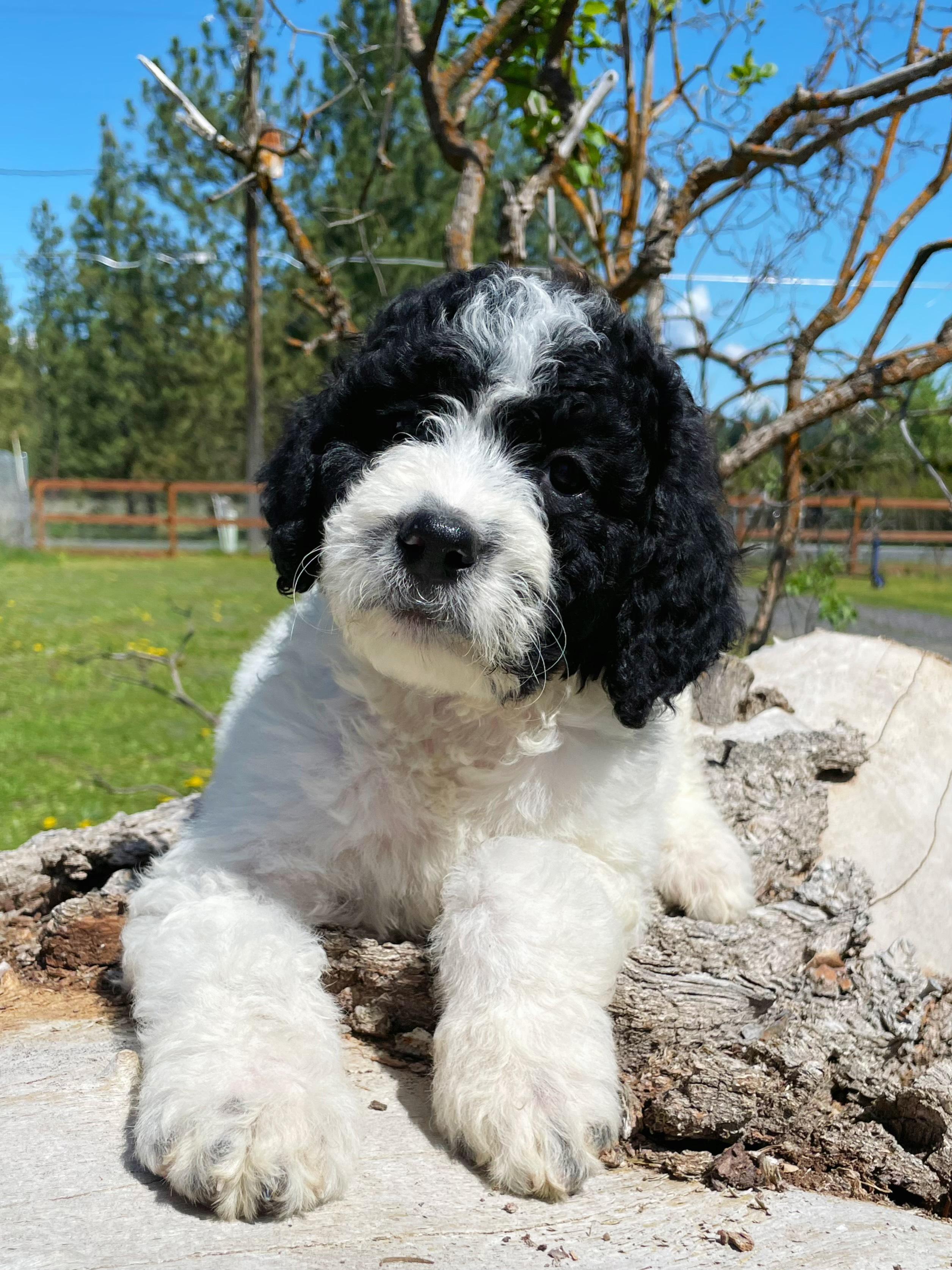 Georgia is an F1 Standard Bernedoodle who lives with her guardian family here in Spokane. He is a social, happy girl who is full of life and always happy with lots of love to give. She is an amazing mama who is very attentive to her babies.