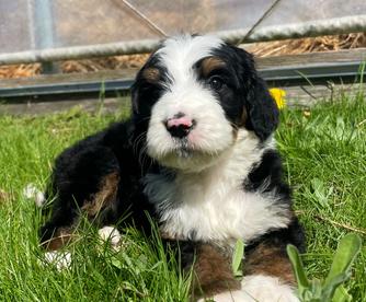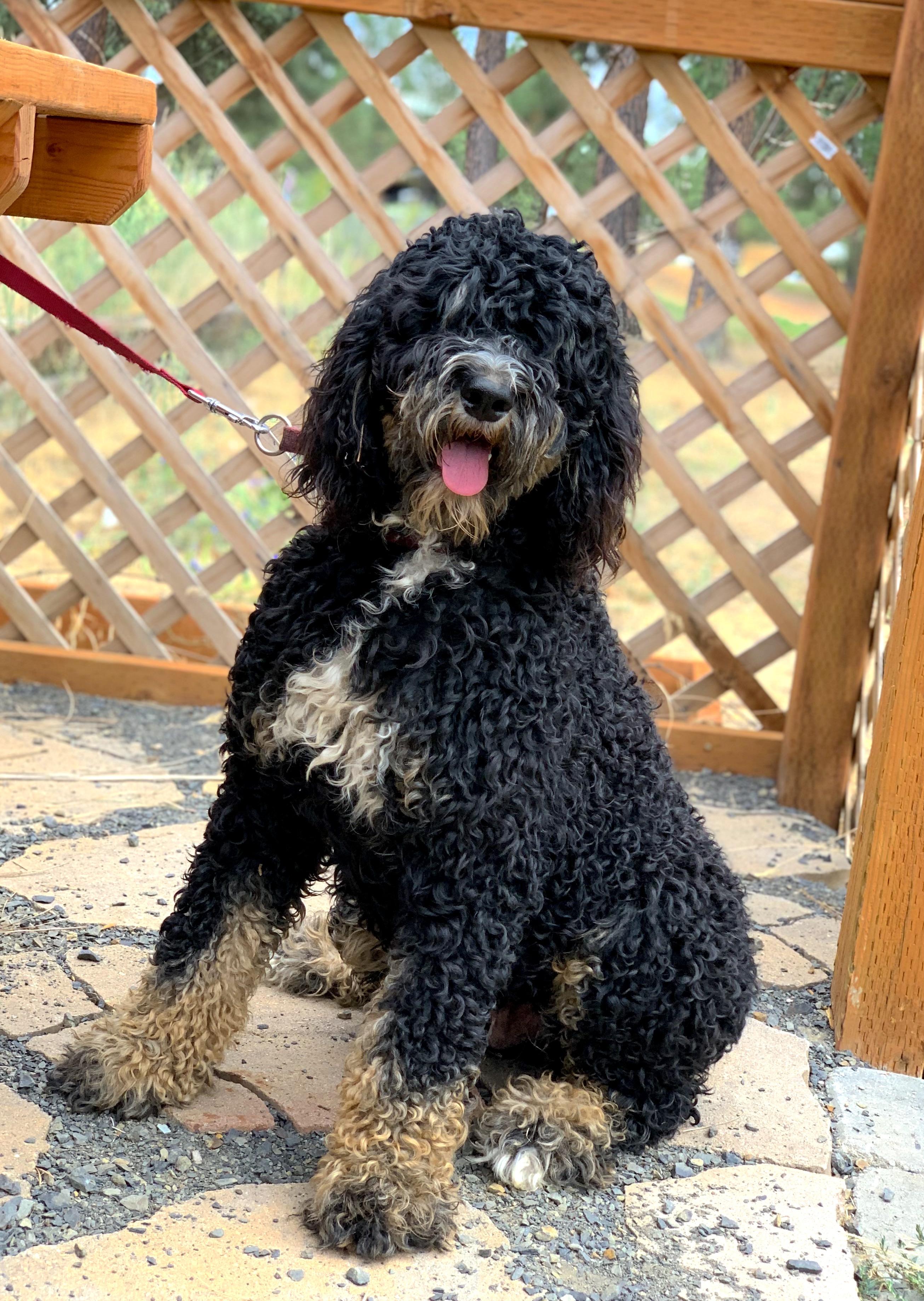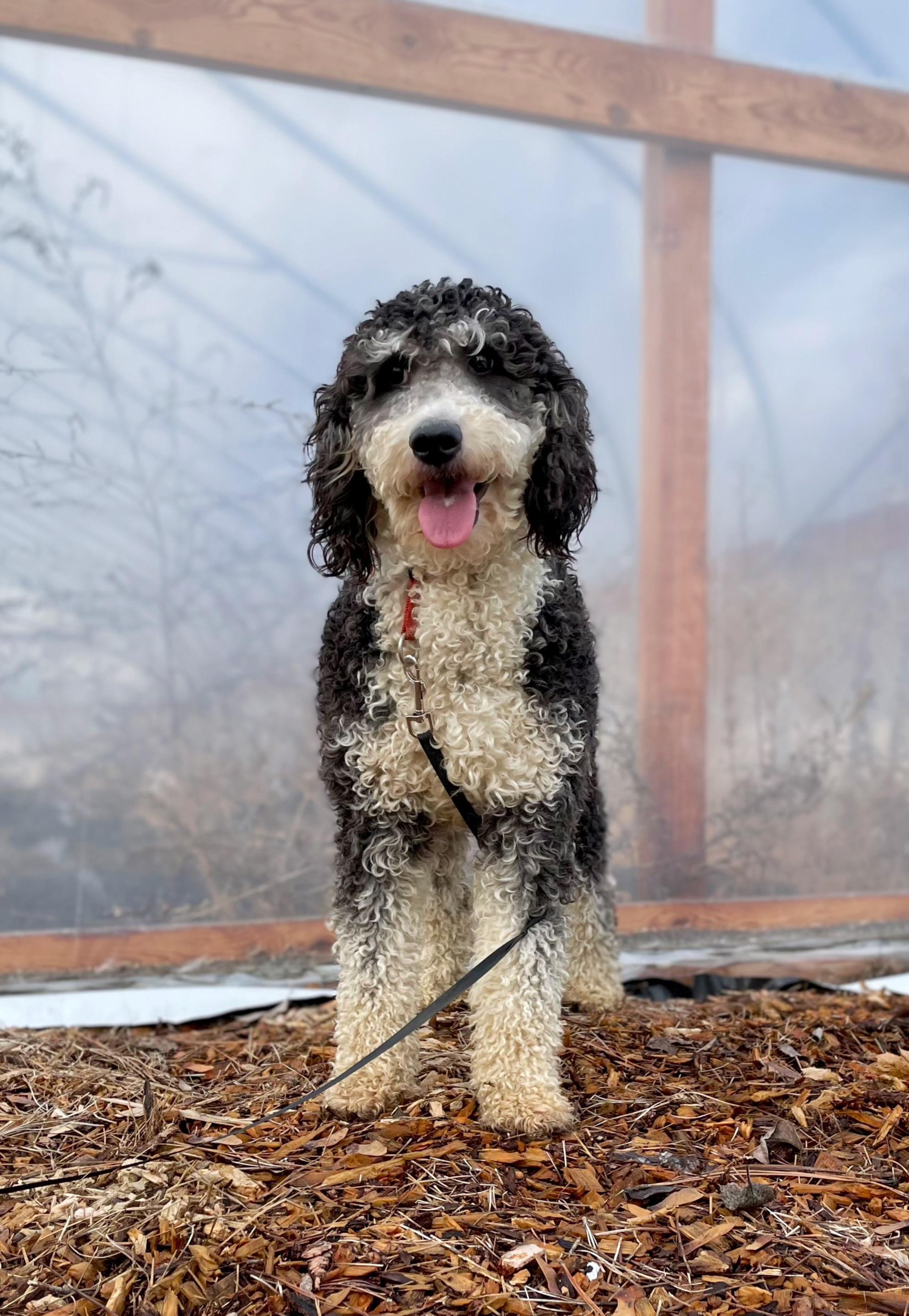 Poppy is a an easy-going, eager to please F1b bernedoodle. She resides with her guardian family in the countryside.