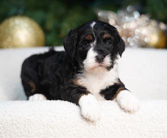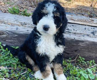 Neo is a 30lb multi-gen bernedoodle. He has a sweet mellow temperament and loves scratches behind the ears.