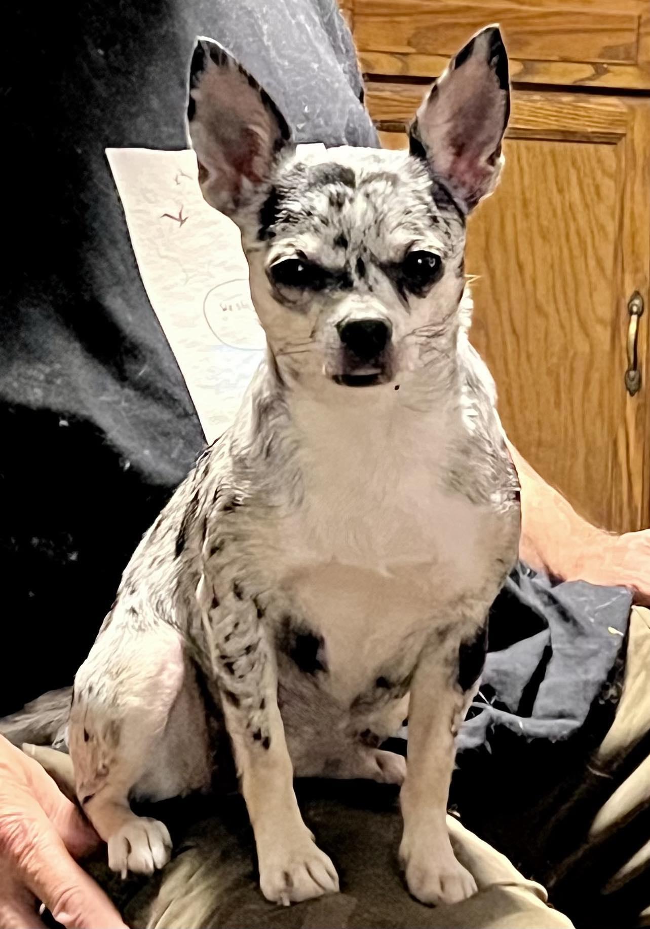 Chelsey is a female Chihuahua. Carefully selected as a great representative of her breed, Ginger decided to make her part of their program. Ginger has passed Good Dog’s screening process, which involved a review of their breeding practices, environment, and the mental and physical health of their dogs.