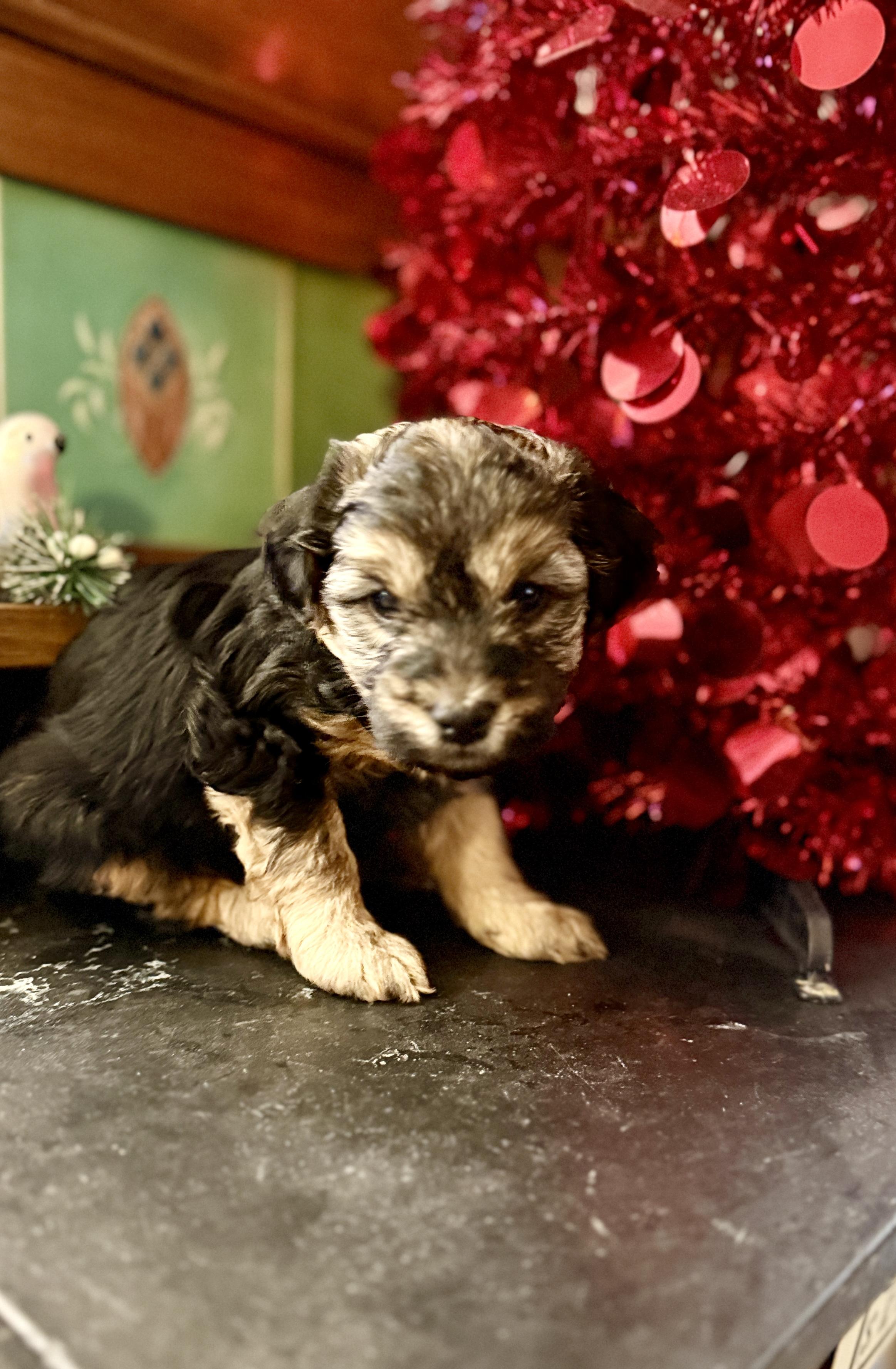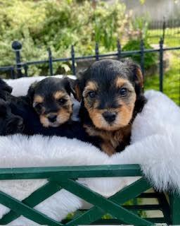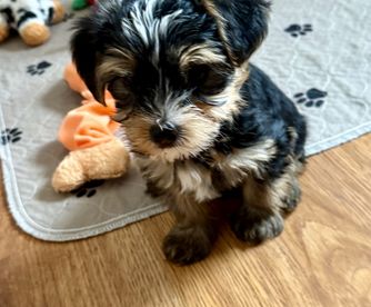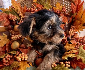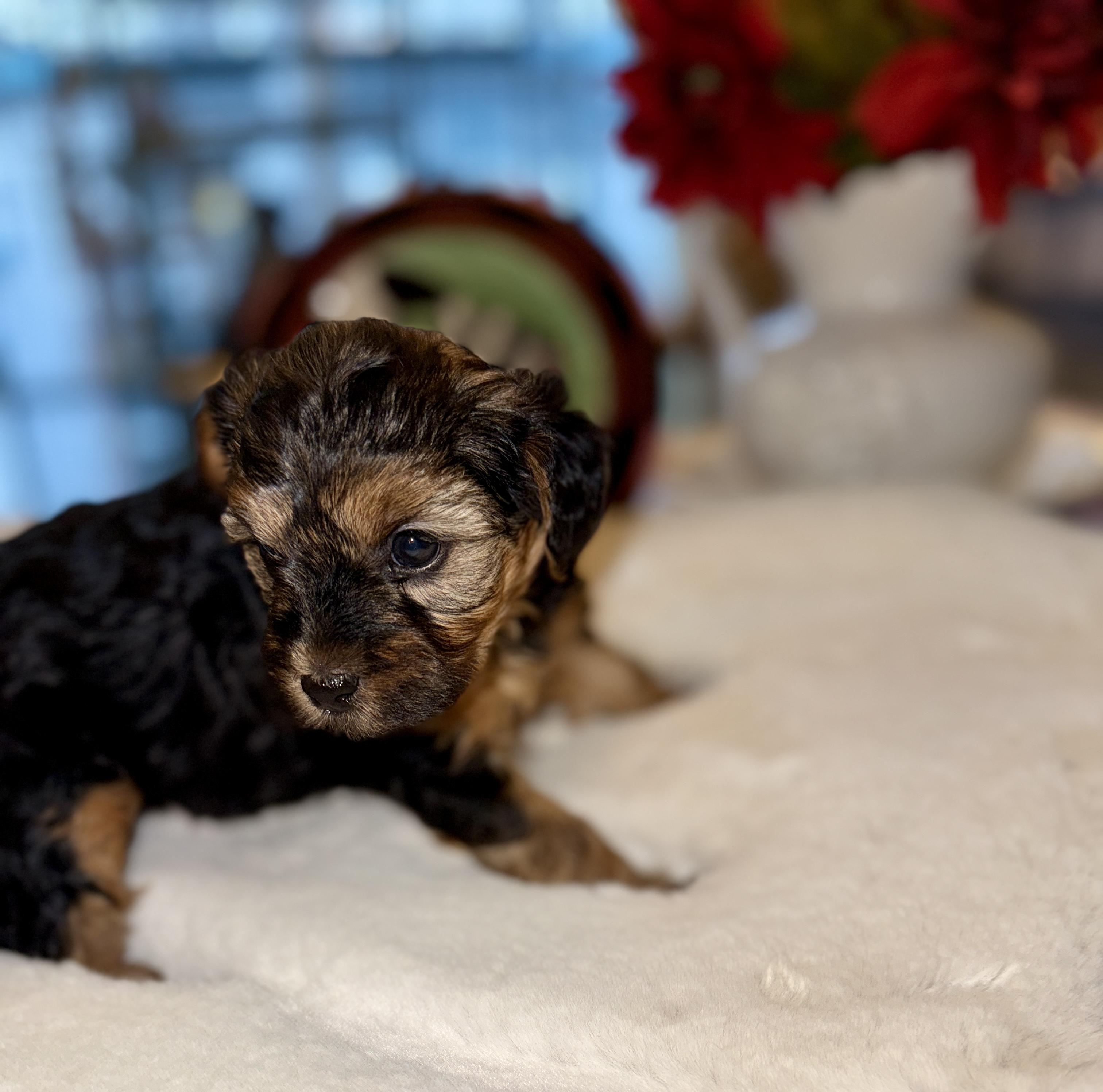 Our Morkie puppies are black & tan tri-color. Colors will vary depending on the parent dogs.