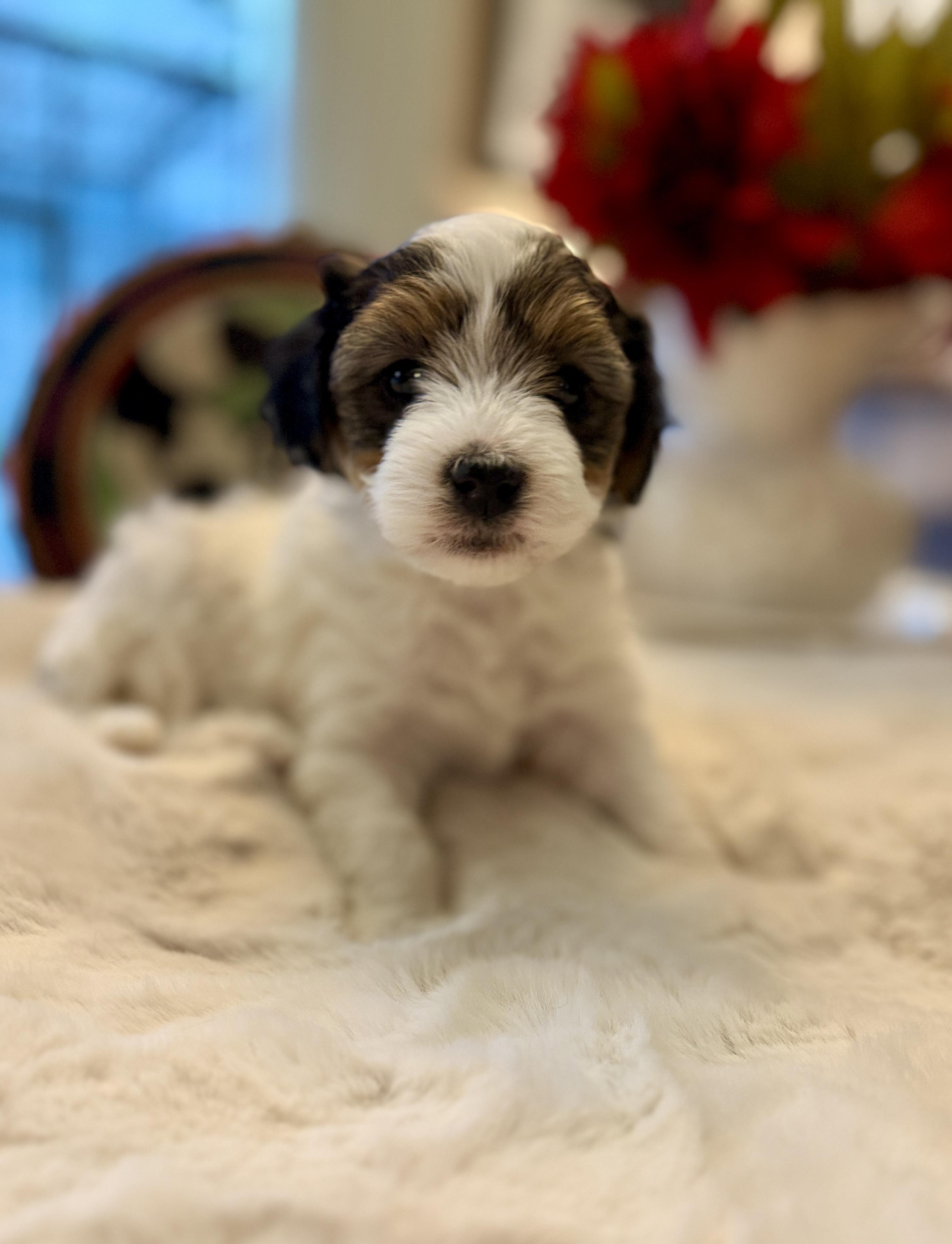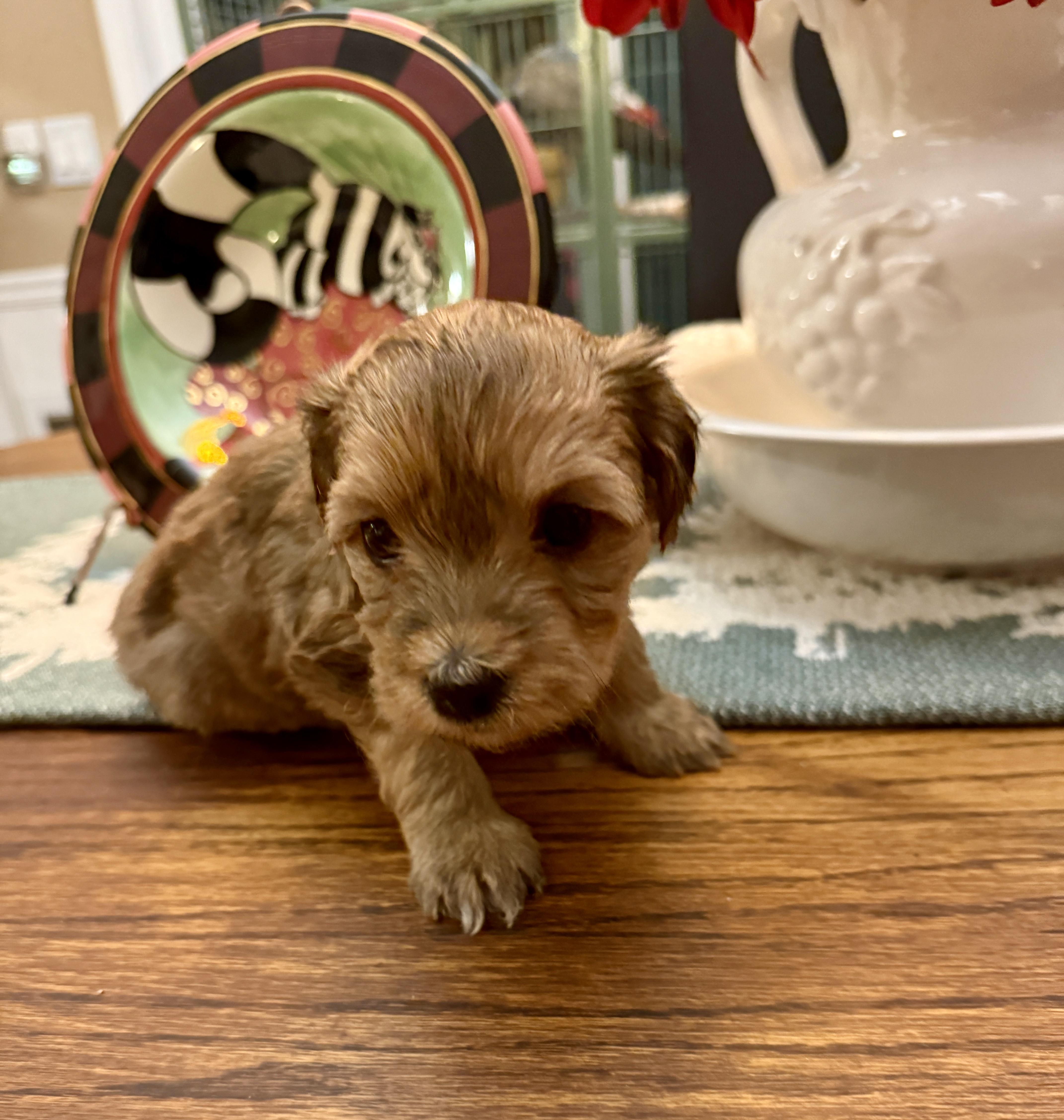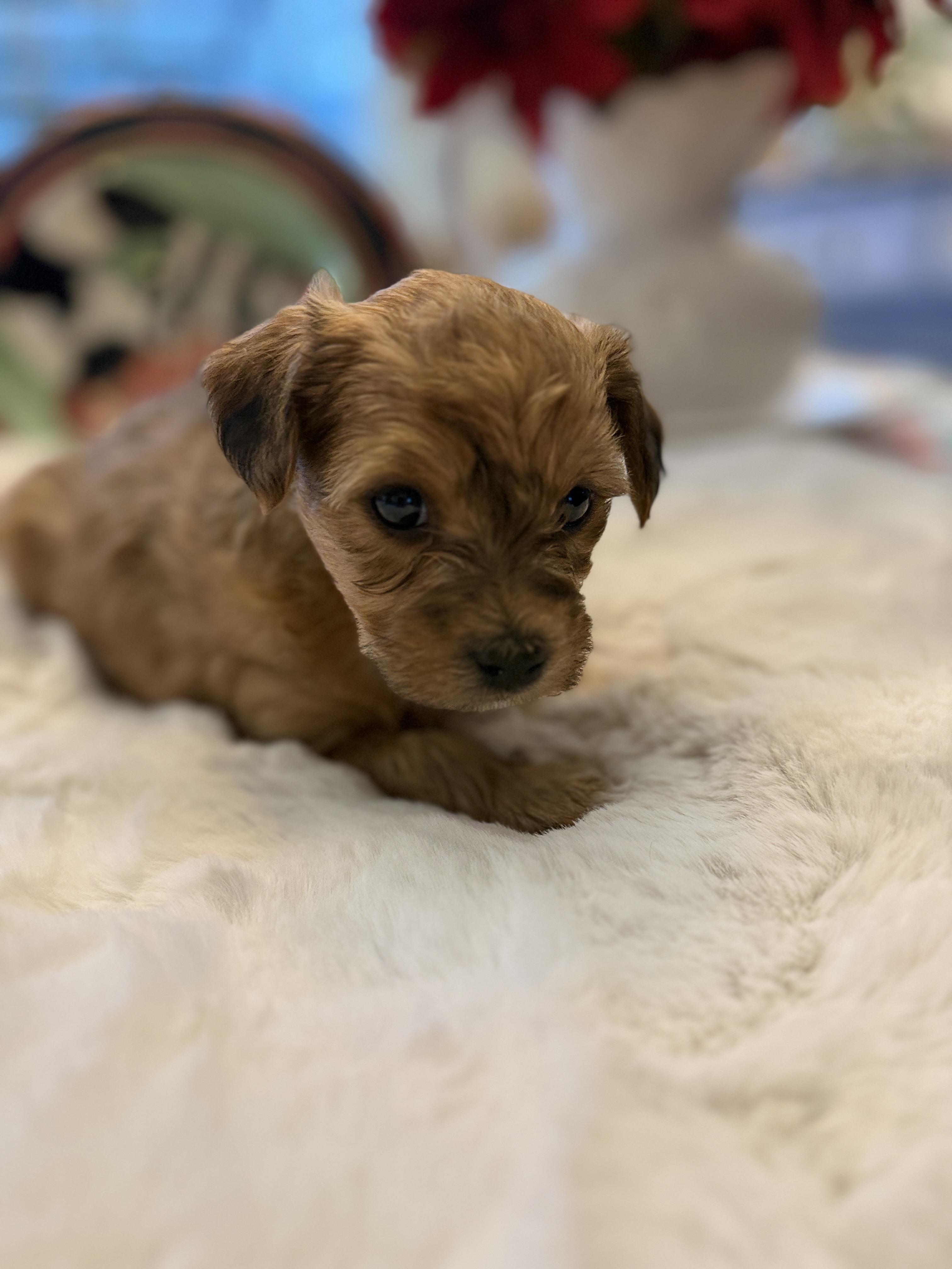 Our Morkie puppies are black & tan tri-color. Colors will vary depending on the parent dogs.