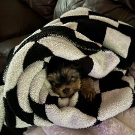 Linda made everything so easy! I grew up having 2 Yorkies as my whole world! I always wanted a Yorkie once I bought a home with my fiancé. We live in Yelm Washington, so we traveled five hours there and back! This little man we got was so worth it! It was so amazing to see his brothers and sisters and parents all running around together! Deegan is playful, loving, a huge cuddler, healthy, loves walks, and playing fetch. We are so beyond in love head over heels for this little man. Thank you, Linda, for making our experience so unique and loving!!