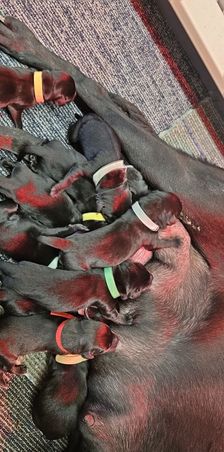Our puppies include black, chocolate, and yellow. Colors will vary depending on the parent dogs.
