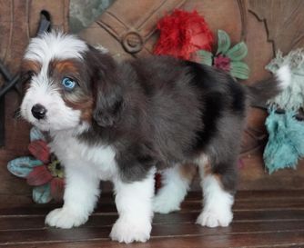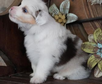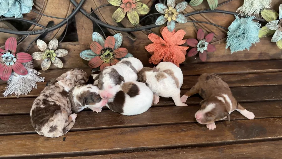 Our Toy Australian Shepherd puppies include red & white, black & white, red, black, black tri, blue merle, red merle, and red tri. Aussiedoodle puppies include brown and white, sable, blue merle, red merle, black phantom, black tri-color, and red tri-color. Miniature Australian Shepherd puppies include yellow, red & white, black & white, blue merle, black tri, red tri, red merle, red, and black. Colors will vary depending on the parent dogs.