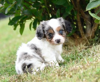 Our Cavalier King Charles Spaniel puppies include blenheim, ruby, tri-color, and black and tan. Cavapoo puppies include merle, red, cream, chocolate, blenheim, black and tan, and apricot. Colors will vary depending on the parent dogs.