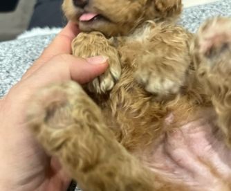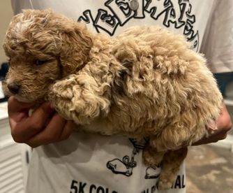 Our Bernedoodle puppies are tiny size. Goldendoodle puppies are medium size. Sheepadoodle puppies are miniature size. Poodle puppies are toy size. Sizes will vary depending on the parent dogs.