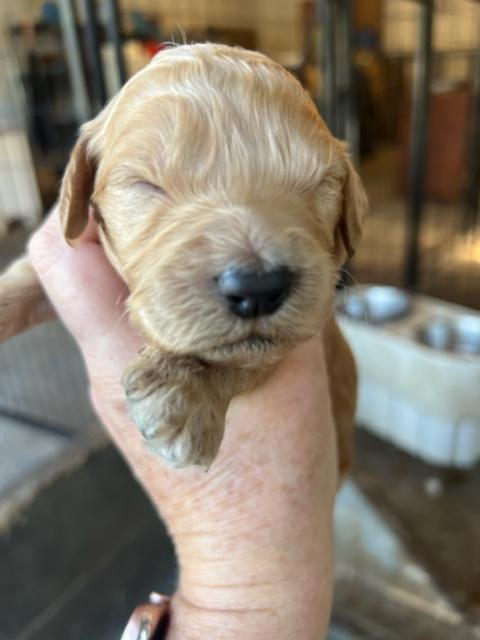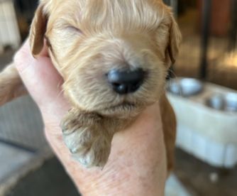 Rosey is a female Goldendoodle. Carefully selected as a great representative of her breed, Belinda decided to make her part of their program. Belinda has passed Good Dog’s screening process, which involved a review of their breeding practices, environment, and the mental and physical health of their dogs.