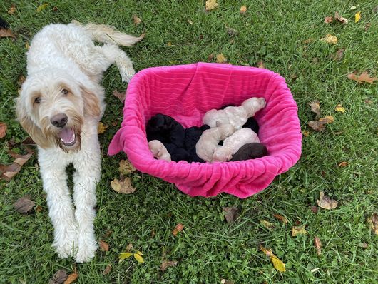 We started breeding dogs in 2018. With the need of hypoallergenic family friendly dogs in our own home, we found a passion for Goldendoodles. We had our first litter because a couple friends wanted a puppy from our dogs. We just weren't sure, but when my niece wanted a puppy, well, we couldn't think of a better dog for a child than a combo of our awesome dogs!