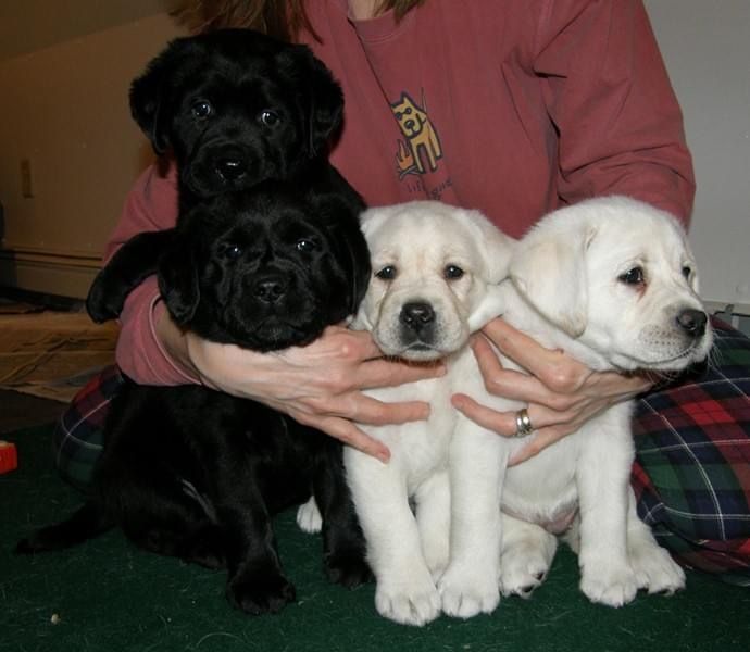 Our puppies include black, chocolate, and yellow. Colors will vary depending on the parent dogs.