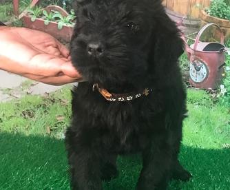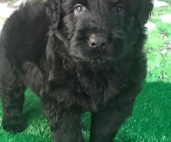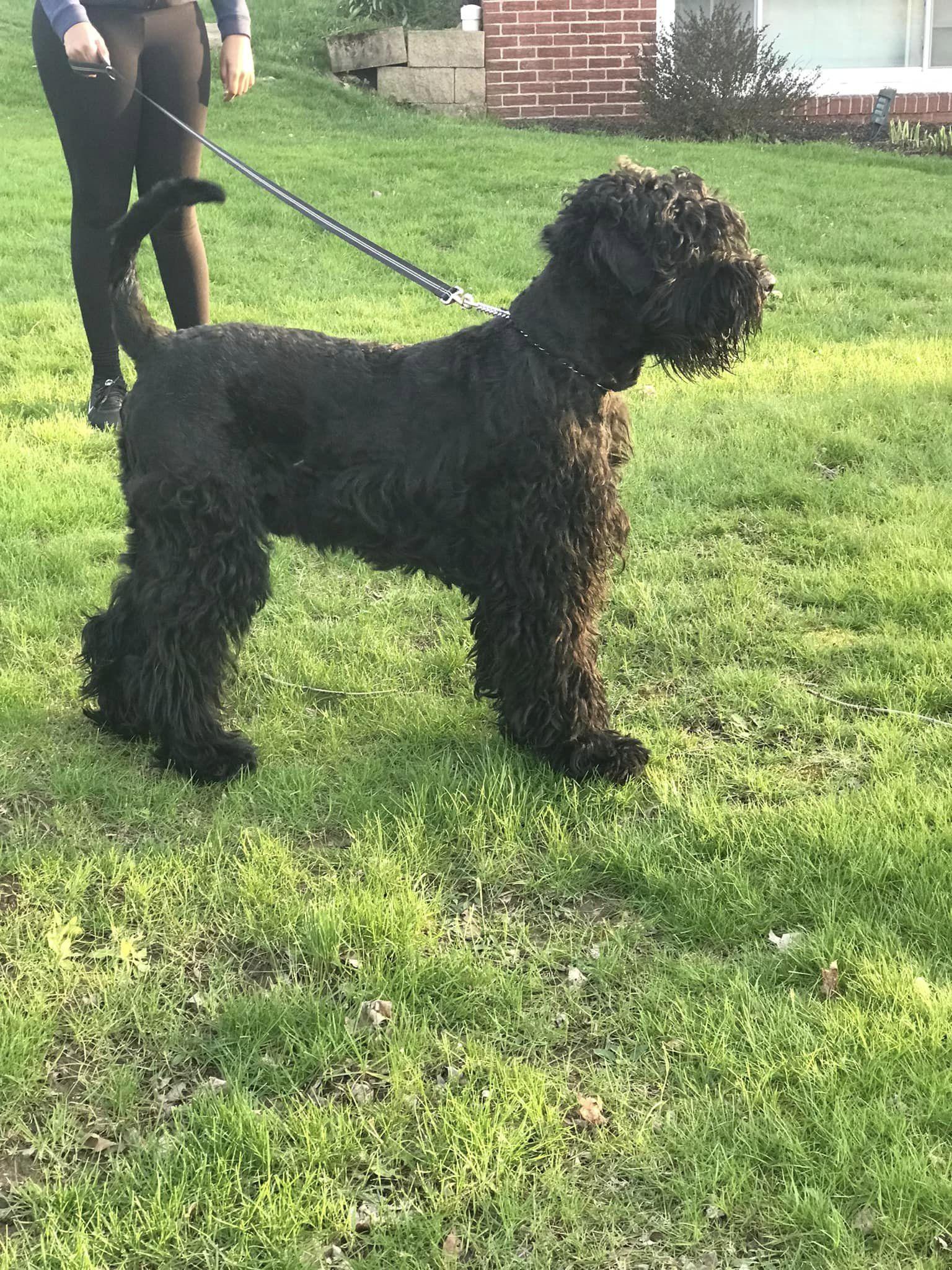 Shuri is a female Black Russian Terrier. Carefully selected as a great representative of her breed, Jermaine decided to make her part of their program. Jermaine has passed Good Dog’s screening process, which involved a review of their breeding practices, environment, and the mental and physical health of their dogs.