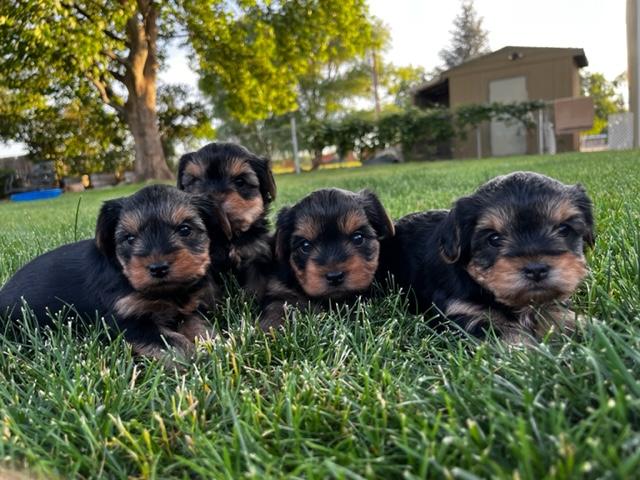 Our AKC Yorkies live among family and friends and get a lot of socialization. They have a huge fenced yard to run in and can come in and out of the house whenever they want. With my large family living in and outside of my home the dogs and puppies get a lot of one on one attention from all ages and all animals since we live in a small farm. I have done health tests and I have my puppies examined by my veterinarian to make sure I have healthy puppies.