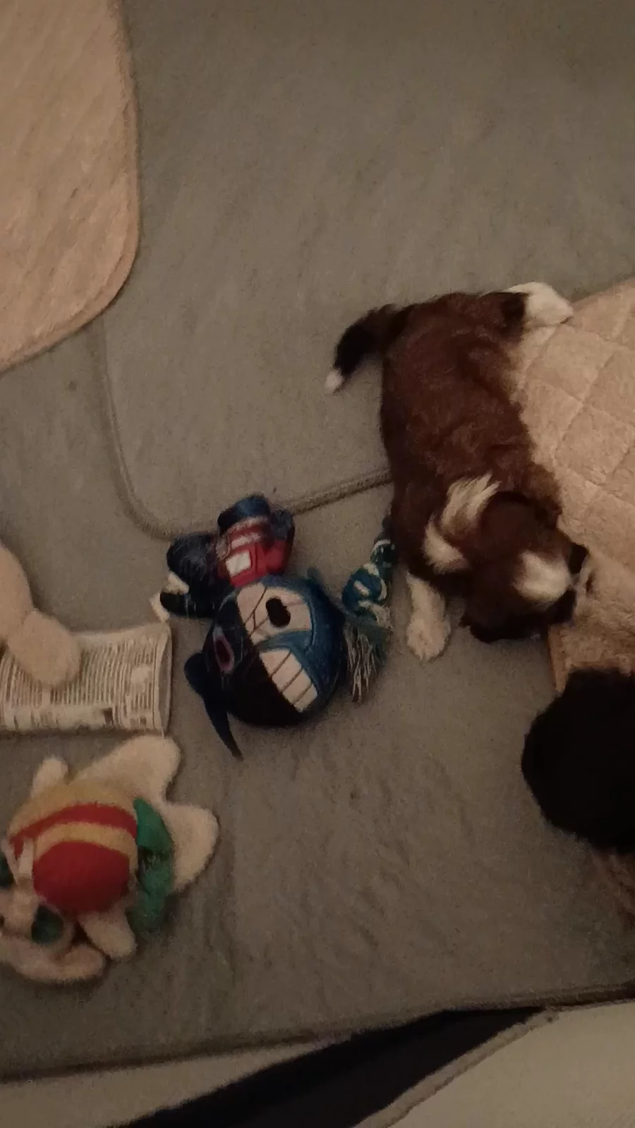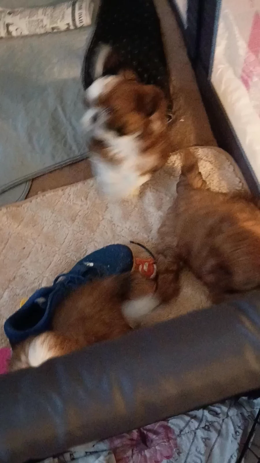 Frankie is a wonderful little male he has been the dad of all of our litters we do have him and the two females they live with me they live in the house he's very sweet and loving good-natured just a wonderful little personality but he also has fooled me where he is a great dad the females will let him come in when the puppies get older and he will lay with his own puppies and just cuddle with them in and lick on them and he is just a wonderful wonderful little Daddy