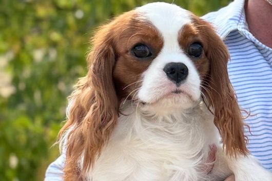 Charlie is a male Cavalier King Charles Spaniel. Carefully selected as a great representative of his breed, Amanda & Patrick decided to make him part of their program. Amanda & Patrick has passed Good Dog’s screening process, which involved a review of their breeding practices, environment, and the mental and physical health of their dogs.