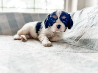 Our puppies include blenheim, ruby, black and tan, and tri-color. Colors will vary depending on the parent dogs.