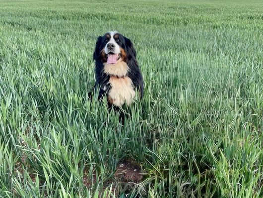 Aspen is our sweet and adventurous female AKC Bernese Mountain Dog, who fills every day with love and joy. She's a playful soul who adores children, always ready to share cuddles and playful moments with them. When she’s not nestled up for some cozy family time, Aspen is happiest exploring the great outdoors. Whether it's hiking through trails or enjoying a walk in the fresh air, she thrives in nature and loves every adventure. Her gentle heart and adventurous spirit make her the perfect companion, always balancing outdoor fun with heartwarming affection. Aspen is truly a beloved part of our family.