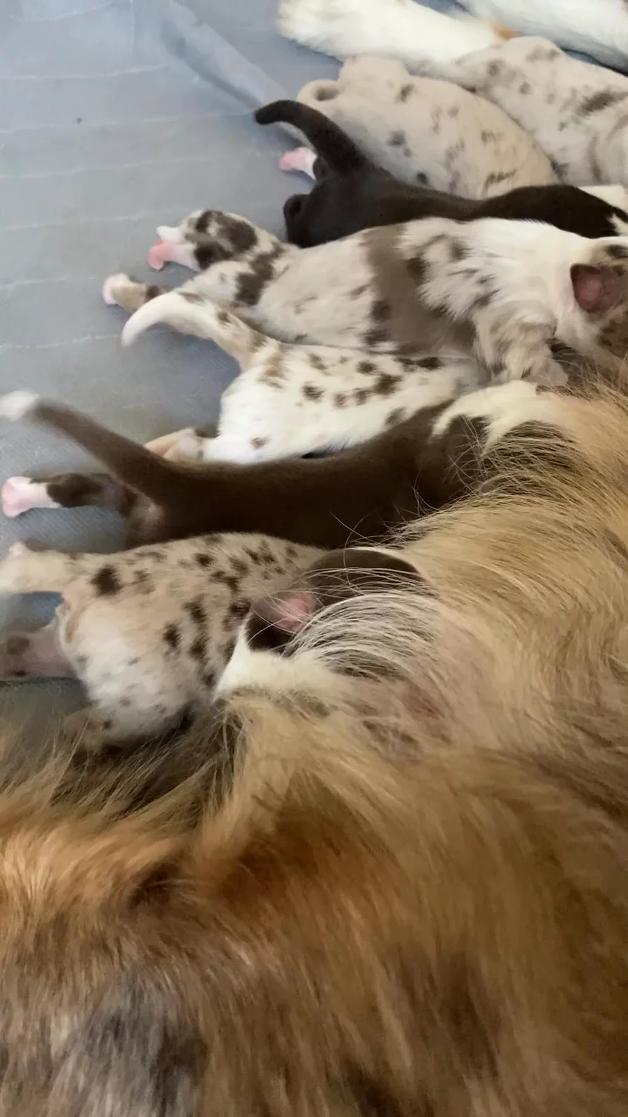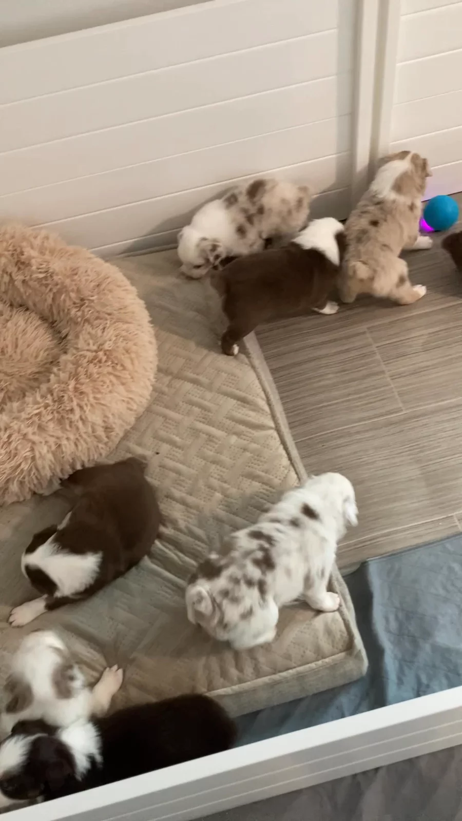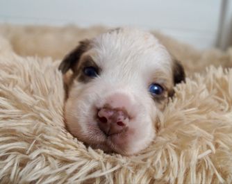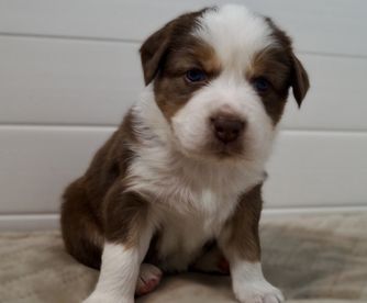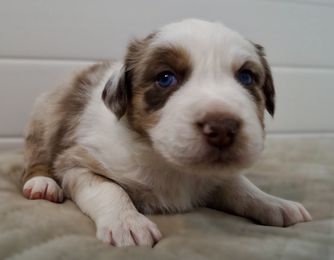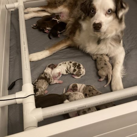 Our puppies include red merle and red tri-color. Colors will vary depending on the parent dogs.