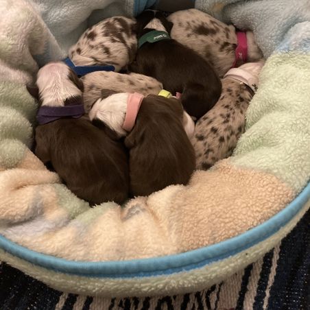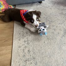 I had a fantastic experience with this Gabriele. She sent updates with photos and videos multiple times per week, which made the whole wait feel reassuring and exciting. Communication was always easy and clear — no surprises at any point. I also appreciated how intentional she was about making sure her puppies were going to the right homes; Aussies aren’t for everybody, and it showed how much she truly cares. Pickup was smooth, and she even sent us home with a great little tote bag. Highly recommend her to anyone looking for an Aussie