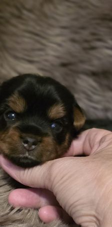 Our puppies include black and gold and blue and gold. Colors will vary depending on the parent dogs.