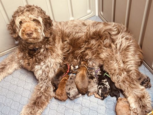 I'm Tiffany C., the breeder behind Little Bear Paws Aussiedoodles located in Watertown, WI. All of our dogs are loved as family members. We cherish our puppies from birth up until they leave our arms to snuggle into yours! We are dedicated to always providing our buyers and our puppies with a positive experience, which includes remaining committed to responsible practices when it comes to breeding, training, and rehoming our puppies.