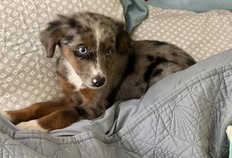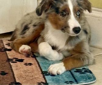Our puppies include blue merle, black tri, red tri, and red merle. Colors will vary depending on the parent dogs.